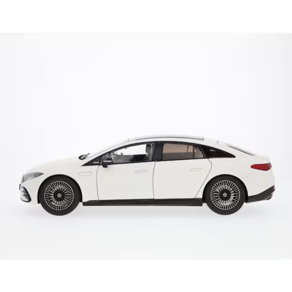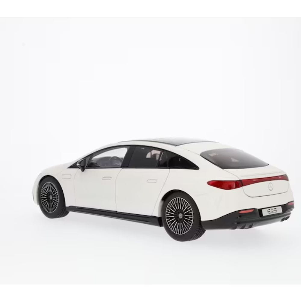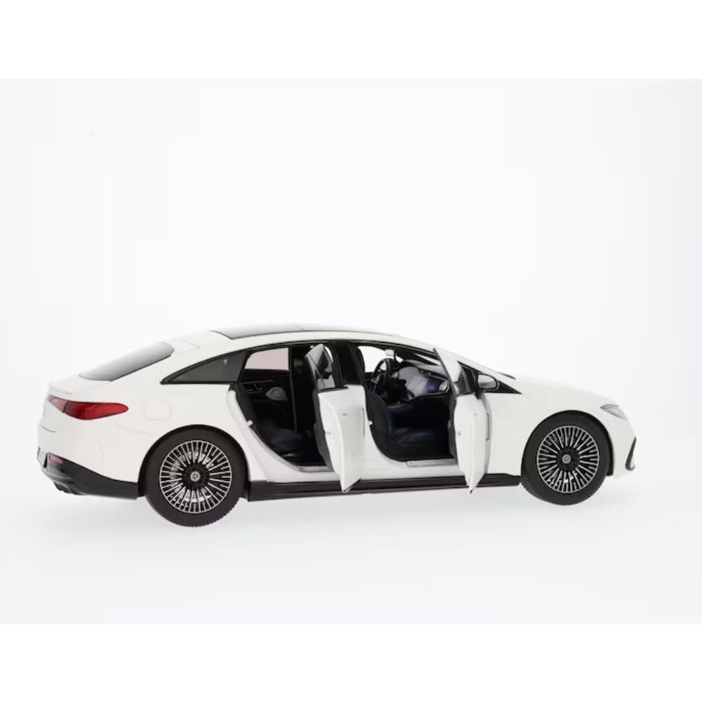 Nadwozie AMG Line, wnętrze Electric Art, panel gwiazdowy, wielowiązkowa dioda LED PAX, dach panoramiczny, zlicowane klamki drzwi, ekran PAG Hyperscreen, tył PAT Premium lub 21-calowe felgi aluminiowe AMG o konstrukcji wieloramiennej: jako pojazd elektryczny klasy luksusowej nowy EQS Sedan wyznacza standardy – a także świetnie wygląda jako replika modelu. Niezwykle dokładny, ręcznie złożony, precyzyjny model został stworzony przy użyciu oryginalnych danych CAD, a jego atrakcyjne cechy obejmują autentyczny kolor lakieru i wierną oryginalną replikę szczegółowego wnętrza. Drzwi i tylną klapę tego modelu można otworzyć, co pozwala na dokładniejsze obejrzenie wnętrza samochodu, które zachwyca wysokiej jakości wnętrzem oraz flokowaną wykładziną w kabinie i podłodze bagażnika. Miniaturowy model EQS Sedan jest dostarczany w opakowaniu Mercedes-Benz EQ i zawiera śrubokręt umożliwiający łatwe wyjęcie modelu oraz rękawicę chroniącą przed odciskami palców.
