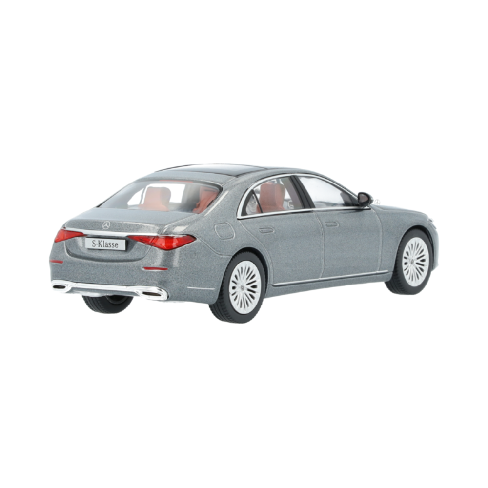 Ręcznie składany oryginał jest odtwarzany z największą dbałością o szczegóły: Klasa S jest nie tylko pomalowana na autentyczny kolor, ale także inspiruje dokładnym odwzorowaniem wszystkich szczegółów wnętrza. MULTIBEAM LED, panoramiczny dach, wyświetlacz kierowcy 3D, a także 20-calowe obręcze kół AMG ze stopu metali lekkich z wieloma podwójnymi ramionami dopełniają specyfikację tego sportowego samochodu i są dodatkowo podkreślone przez zlicowane klamki drzwi jako wyświetlacz multimedialny OLED. Model jest zamontowany na podstawie, w pudełku prezentacyjnym i dostarczany w opakowaniu projektowym Mercedes-Benz.