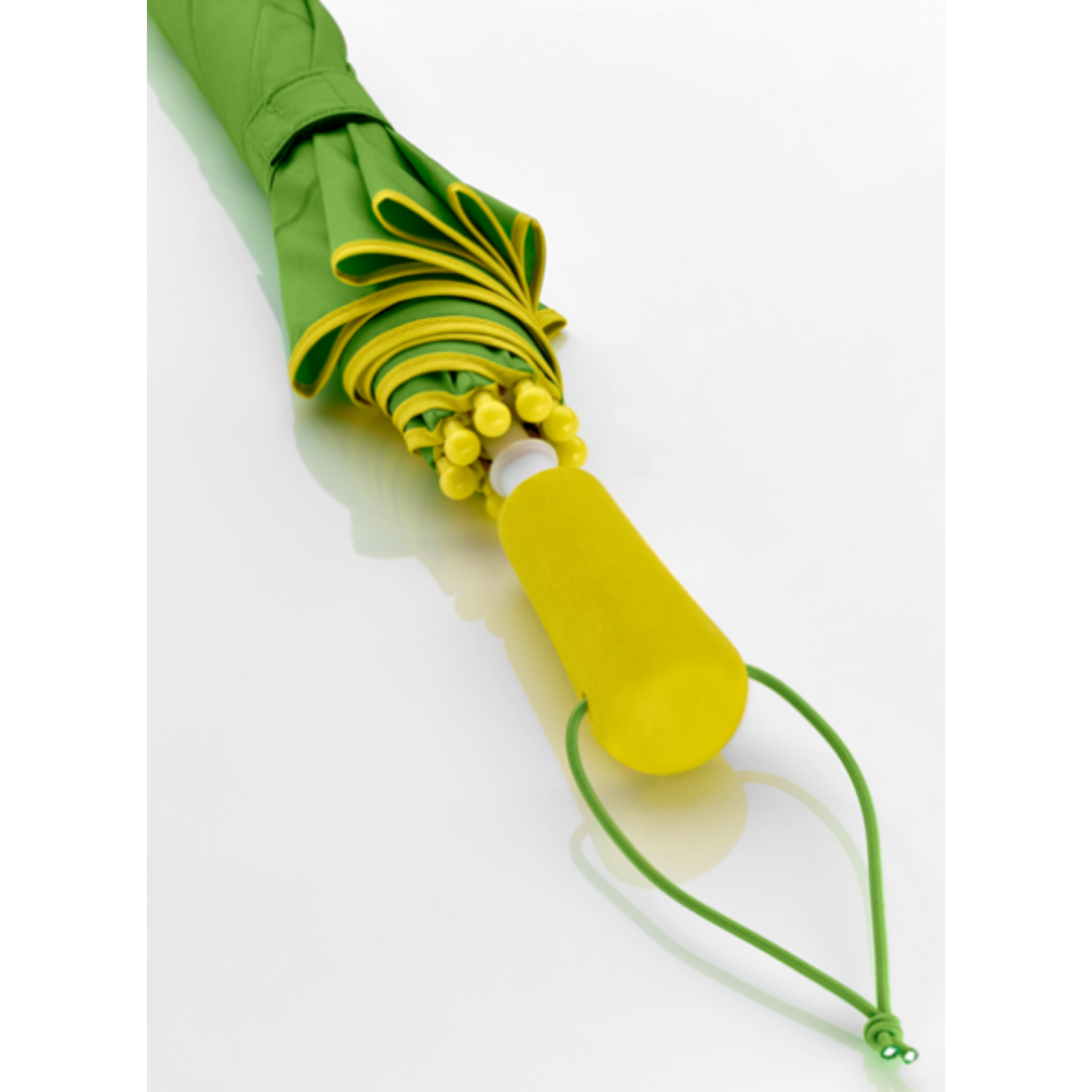 Ten zielono-żółty parasol dziecka z pewnością rozjaśni każdy szary dzień, a jego poliestrowa baldachim zapewnia niezawodną ochronę przed deszczem.