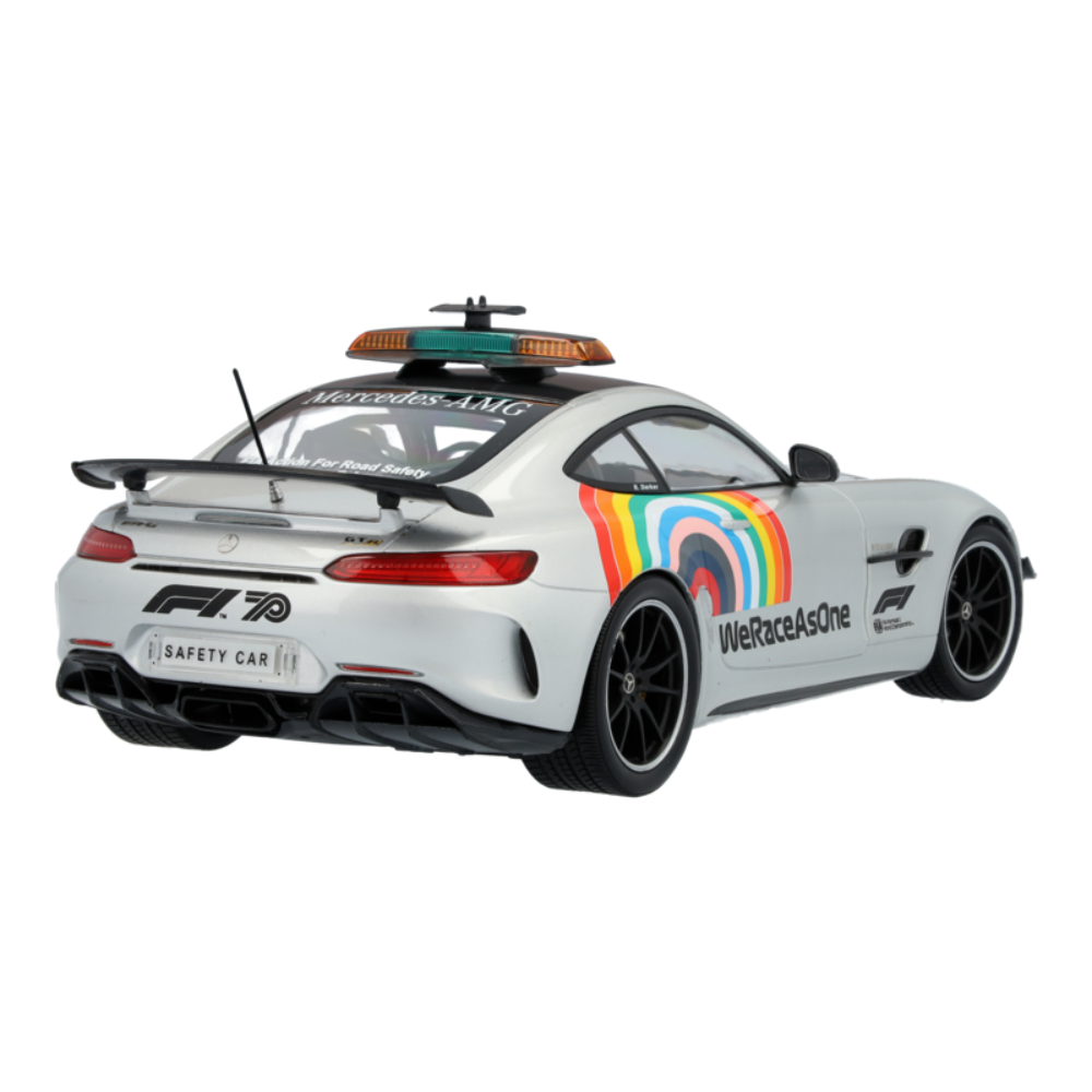 Mercedes-AMG dostarcza Formułę 1 samochód bezpieczeństwa od 1996 r., a od 2000 r. jest on prowadzony przez Bernda Mayländera. Podczas gdy samochód bezpieczeństwa do 2018 r. był specjalnie zmodyfikowanym do tego celu AMG GT S, dzisiejszym modelem wyścigi po torach całego świata to AMG GT R. Ten miniaturowy model znanego samochodu bezpieczeństwa, odwzorowujący w najdrobniejszych szczegółach oryginał, doda do każdej kolekcji. W związku z tym model samochodu jest wykończony w autentycznym kolorze lakieru, a także posiada detale wnętrza, które są wierne oryginałowi oraz wnętrze z wysokiej jakości dekoracją. Limitowana edycja jest dostarczana w opakowaniu Mercedes-Benz w układzie AMG.