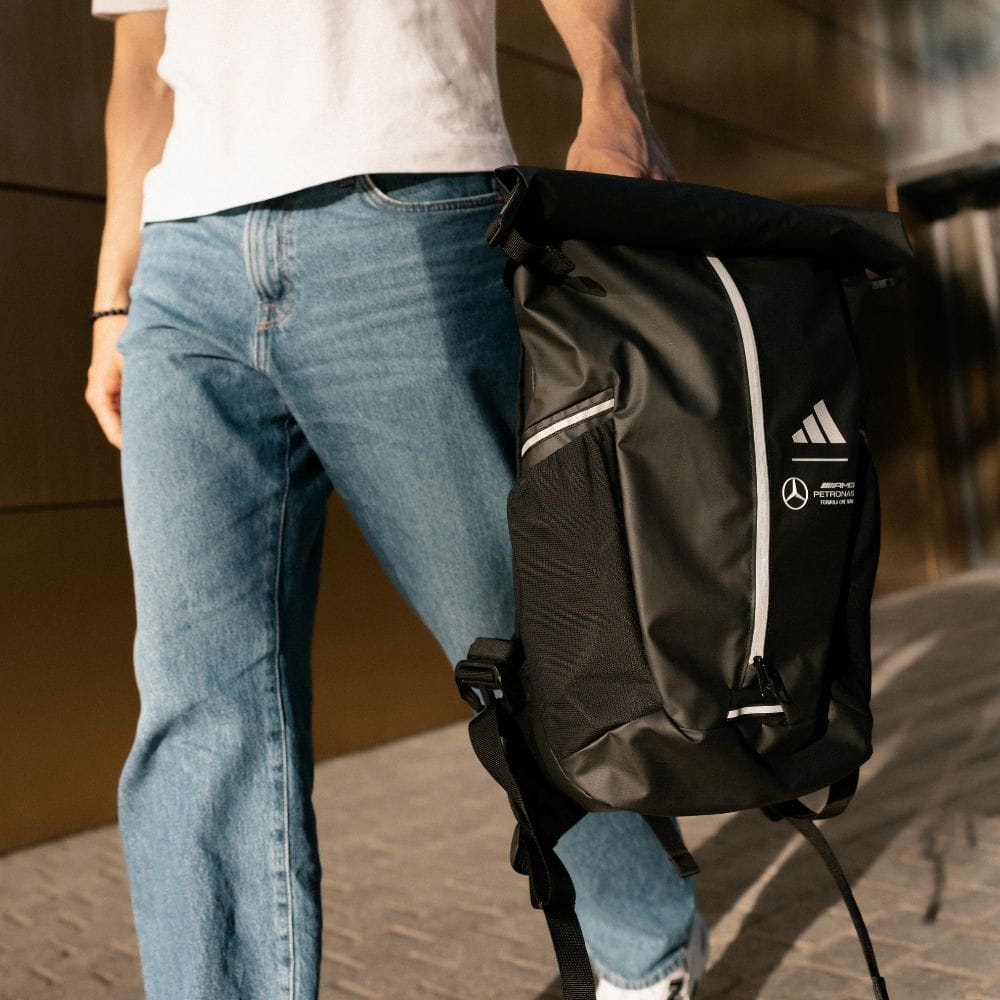 Praktyczny towarzysz, w którym zmieścisz wszystko, co ważne: czarny plecak z logo MERCEDES-AMG PETRONAS FORMULA ONE TEAM i logo adidas imponuje przestrzenią do przechowywania i jest wyposażony w liczne przegródki, w których można bezpiecznie przechowywać najważniejsze przedmioty codziennego użytku. Zarówno boczna kieszeń na butelki, zewnętrzna przegroda na laptopa czy łatwo dostępna, ale ukryta kieszeń: wszystko zostało tutaj przemyślane. Odblaskowe nadruki zapewniają dobrą widoczność nawet przy słabym oświetleniu. Regulowany pasek na klatkę piersiową umożliwia dopasowanie plecaka do indywidualnych potrzeb. Komfort noszenia jest jeszcze większy dzięki formowanej ścianie tylnej 3D, która nie tylko zwiększa stabilność, ale także zapewnia lepszą wentylację.