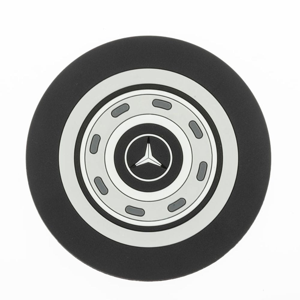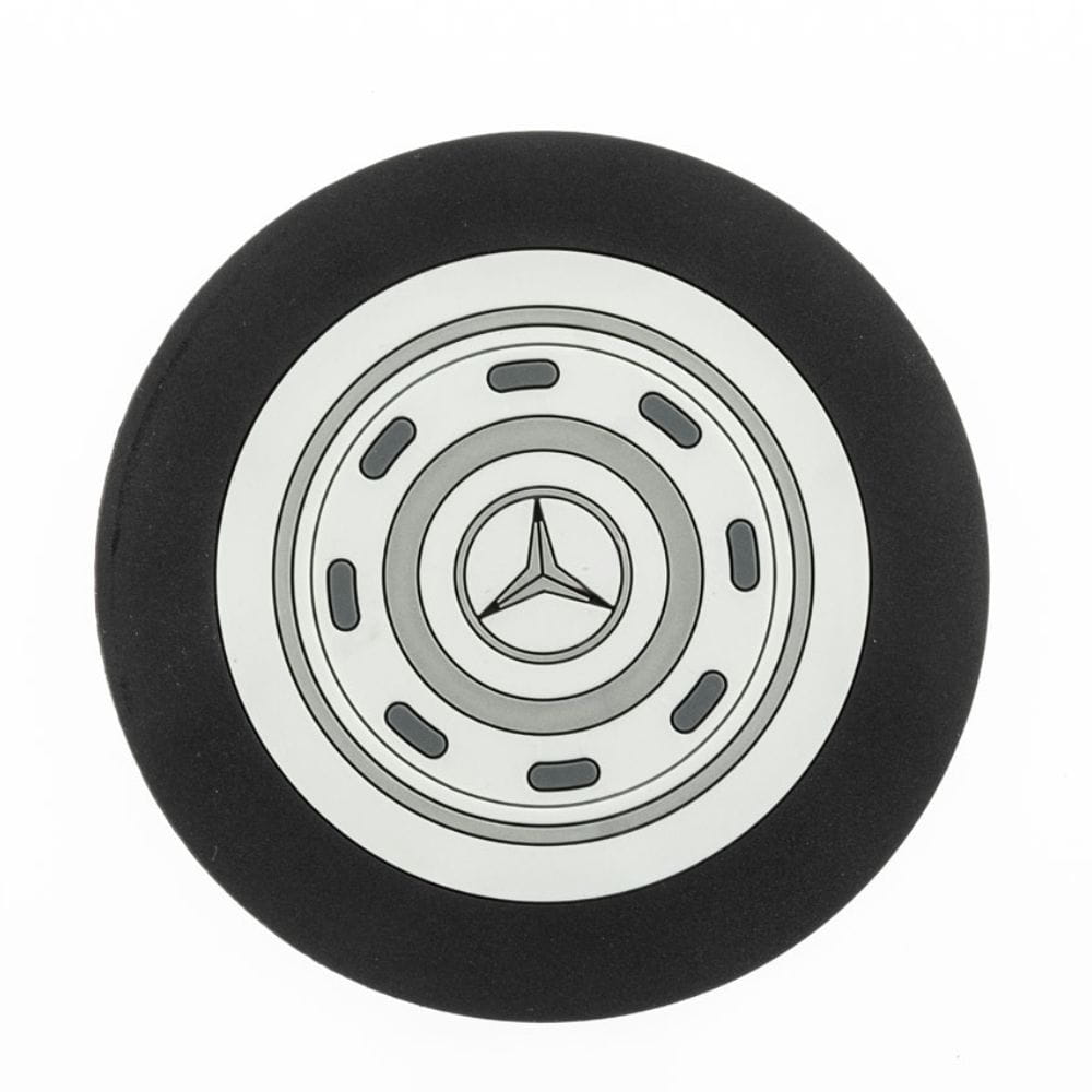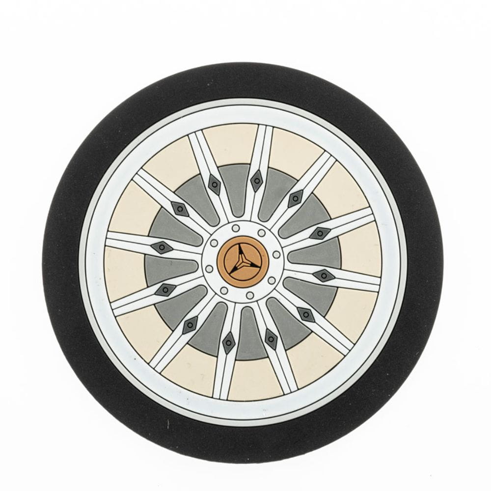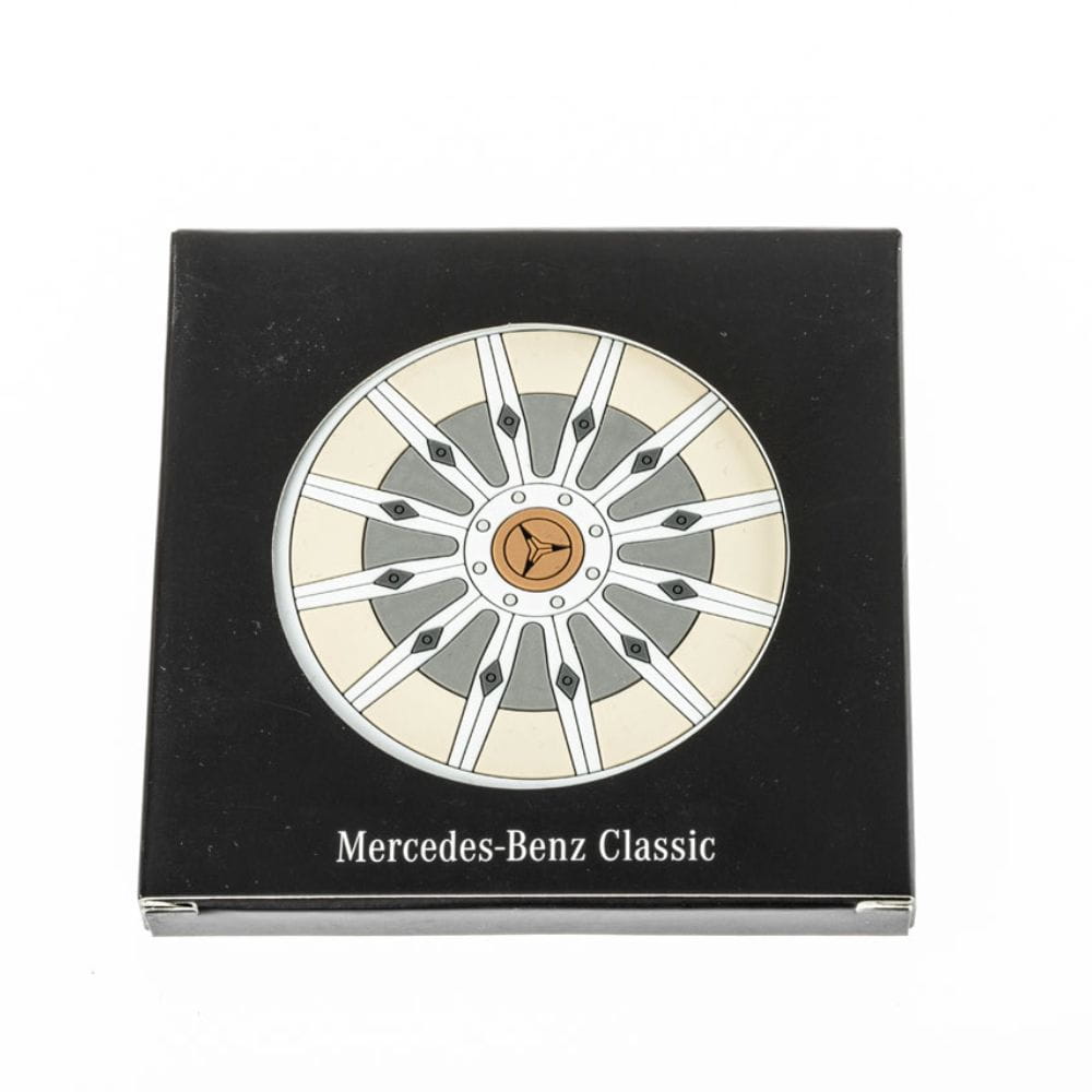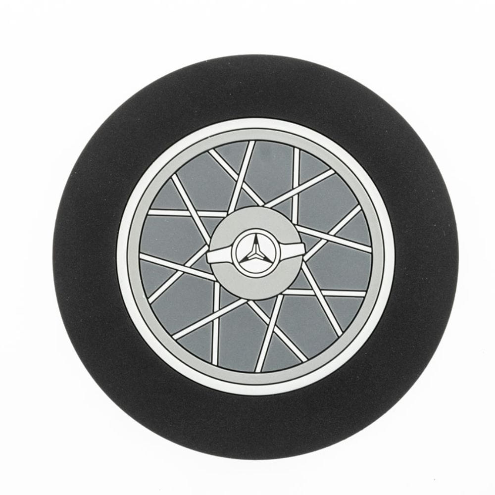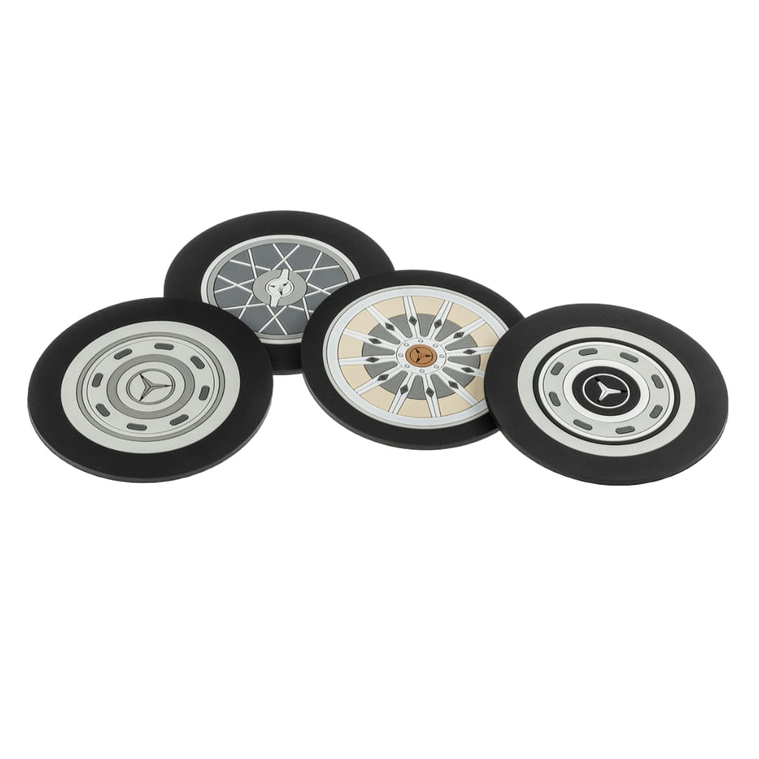 Zestaw 4 podkładek łączy w sobie design i funkcjonalność, prezentując cztery kultowe motywy felg ze świata Mercedes-Benz: Mercedes-Benz 300 SL, Mercedes Simplex 40 KM, Mercedes-Benz 600; Samochód wyścigowy Mercedes-Benz W 125 Grand Prix.