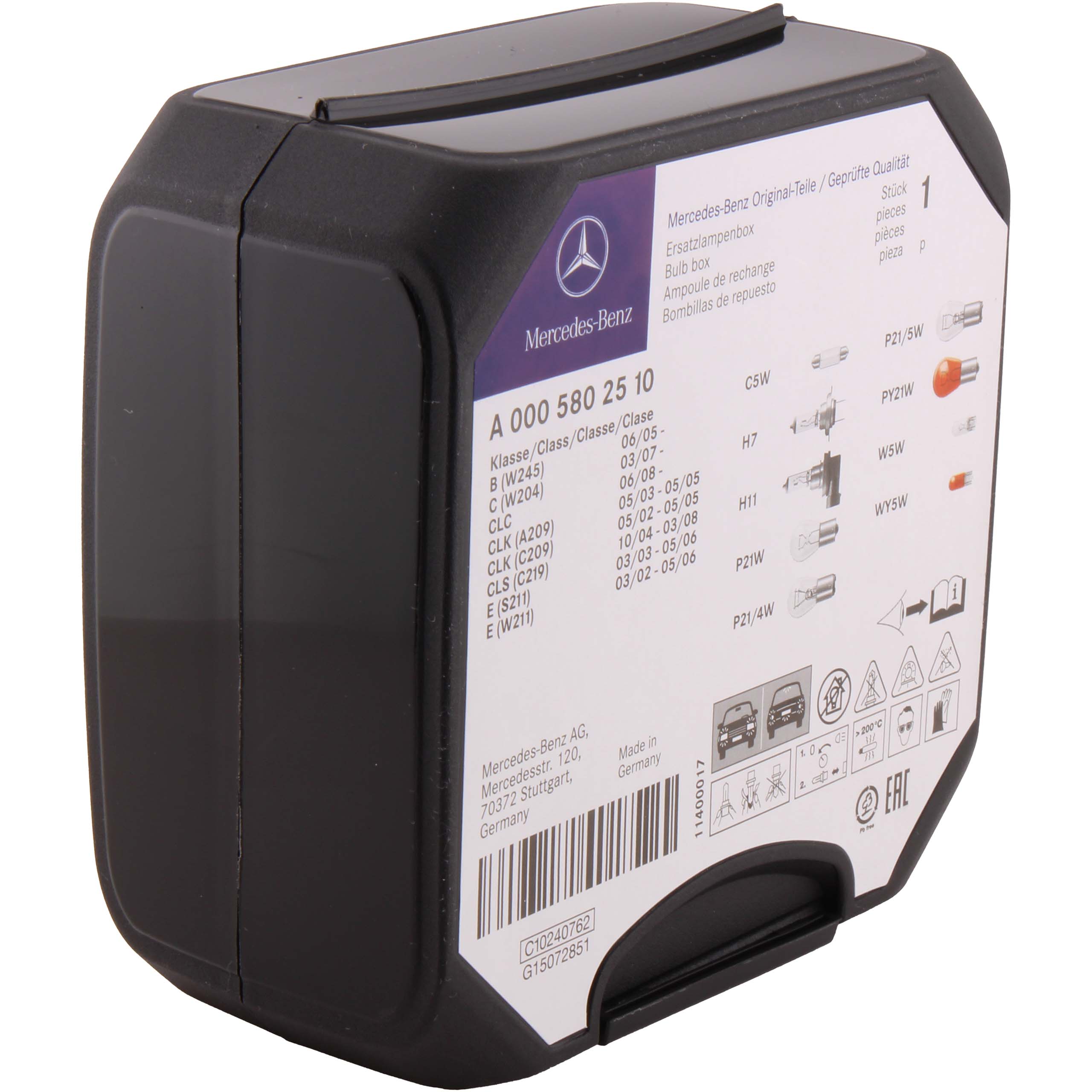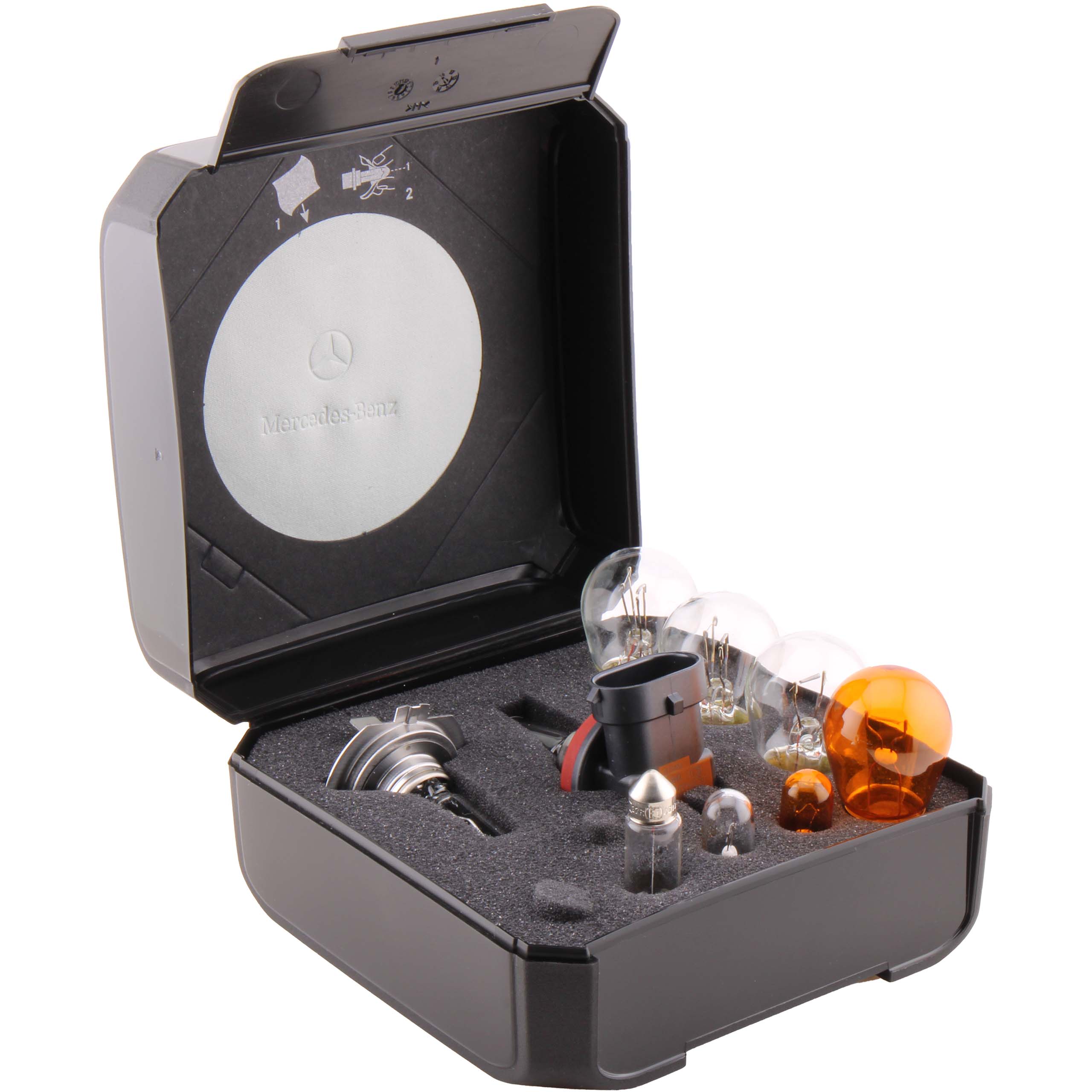 Widzieć i być widzianym: zestaw żarówek zamiennych Mercedes-Benz jest dostarczany w solidnym pudełku, którego zadaniem jest ochrona żarówek i zapewnienie przejrzystego przeglądu zawartości. Każda żarówka jest produkowana zgodnie ze ścisłymi wytycznymi jakościowymi Mercedes-Benz. Oferta została opracowana specjalnie dla modeli samochodów Mercedes-Benz i obejmuje najpopularniejsze żarówki do świateł zewnętrznych, dzięki czemu w najgorszym przypadku zawsze będziesz mieć pod ręką odpowiedni zamiennik.