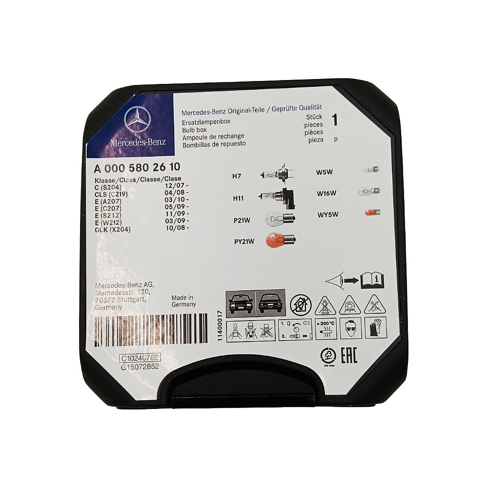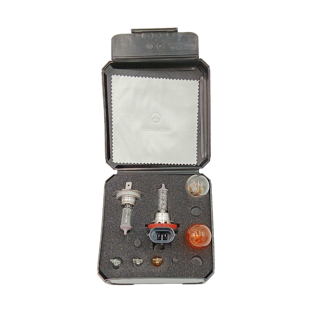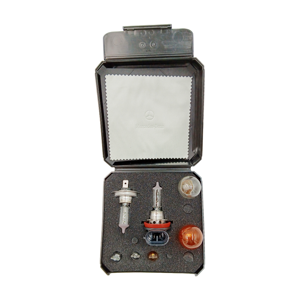 Widzieć i być widzianym: zestaw żarówek zamiennych Mercedes-Benz jest dostarczany w solidnym pudełku, którego zadaniem jest ochrona żarówek i zapewnienie przejrzystego przeglądu zawartości. Każda żarówka jest produkowana zgodnie ze ścisłymi wytycznymi jakościowymi Mercedes-Benz. Oferta została opracowana specjalnie dla modeli samochodów Mercedes-Benz i obejmuje najpopularniejsze żarówki do świateł zewnętrznych, dzięki czemu w najgorszym przypadku zawsze będziesz mieć pod ręką odpowiedni zamiennik.