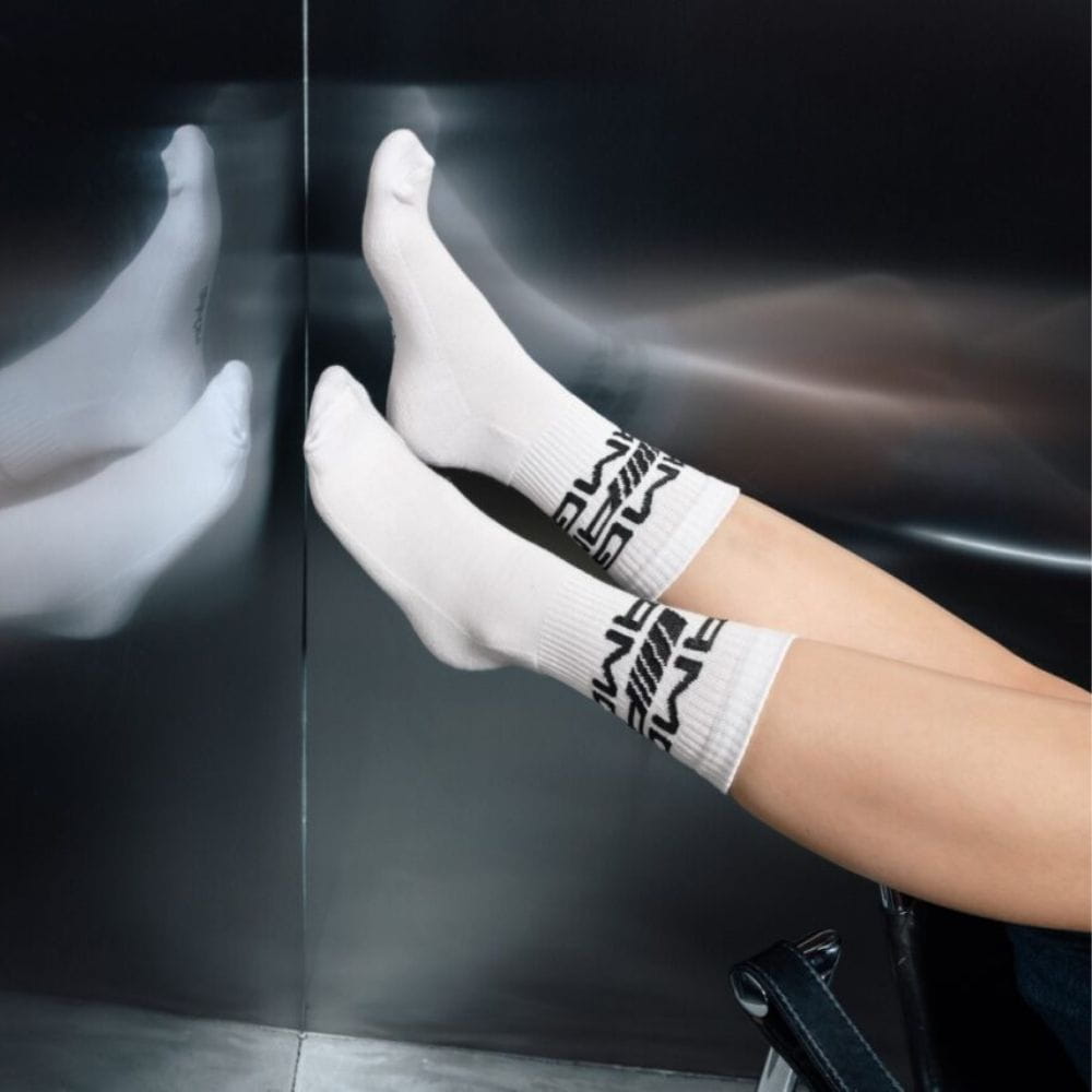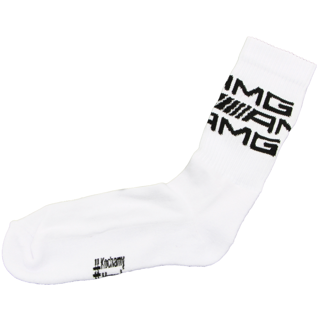 Białe skarpety AMG #KochamyMercedesy to wygodny i stylowy dodatek dla miłośników sportowego charakteru Mercedes-AMG. Wykonane z miękkiej, elastycznej dzianiny, zapewniają komfort noszenia na co dzień oraz dobre dopasowanie do stopy. Charakterystyczny nadruk #KochamyMercedesy oraz motywy AMG podkreślają ich nowoczesny i dynamiczny wygląd.