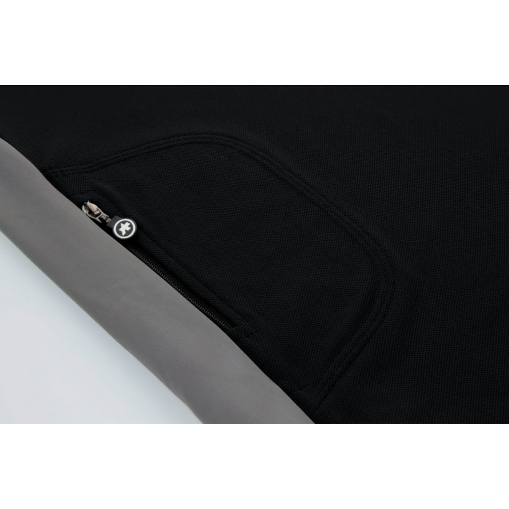 Czarna koszula jest również oddychająca i dzięki kontrastującym akcentom w kolorze czerwonym i szarym zapewnia idealną równowagę między funkcjonalnym wykonaniem a swobodnym krojem. Dłuższy, zaokrąglony dół z tyłu, elastyczne mankiety z dzianiny single jersey i wysoki kołnierz zapinany na zamek oraz wewnętrzny czerwony kontrast elegancko dopełniają wspaniały wygląd tej męskiej koszuli.