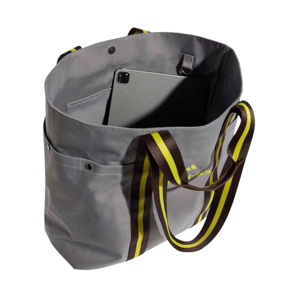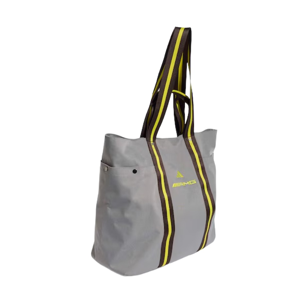 Szara torba shopper AMG to doskonałe połączenie funkcjonalności i sportowego stylu. Ta torba oferuje nie tylko wystarczająco dużo miejsca na co dzień, do uprawiania sportu lub na wypoczynek, lecz również świetnie się prezentuje. Czarne uszy w paski w kontrastującym kolorze żółtym nadają dynamiczne akcenty, a logo AMG i logo adidas z przodu dopełniają całość.