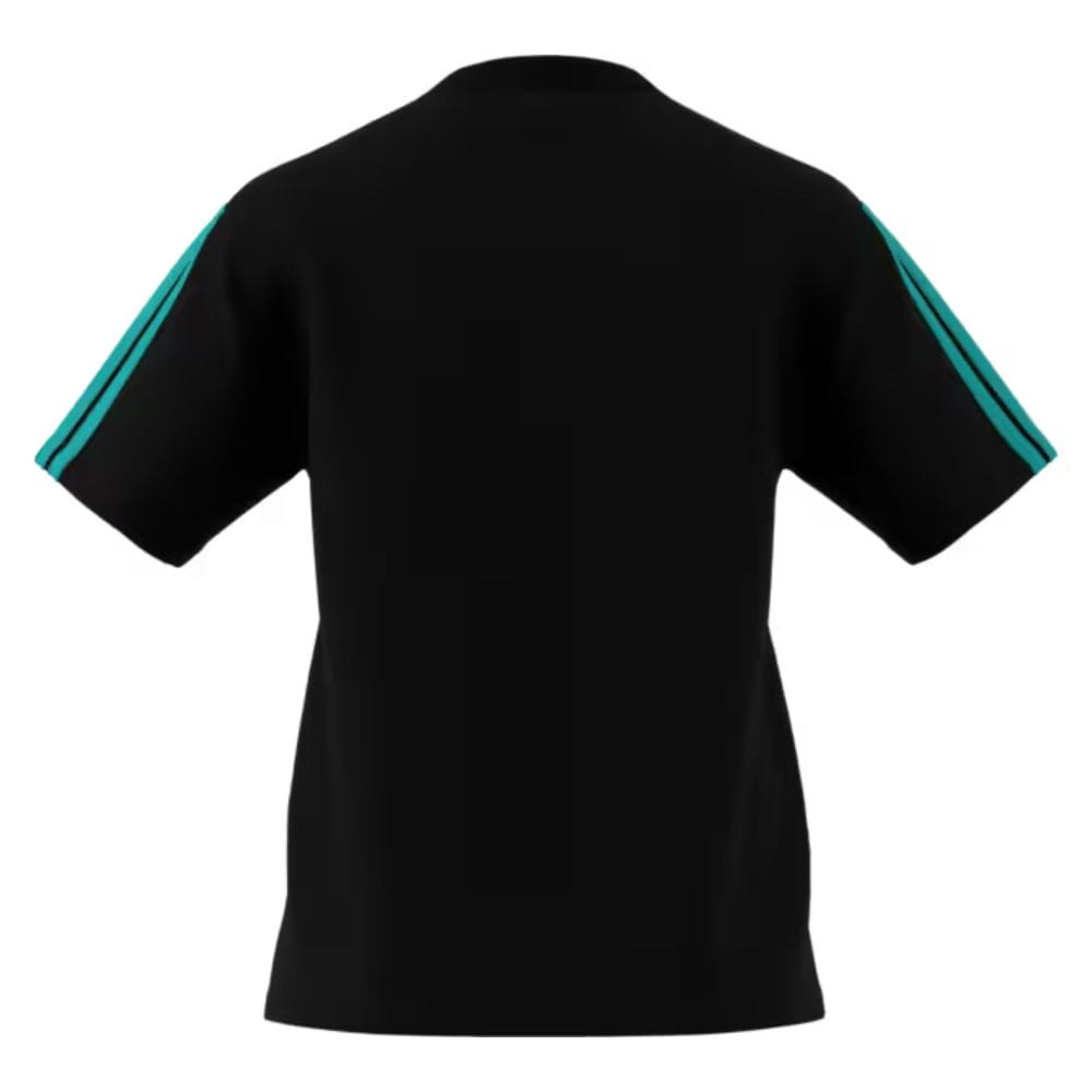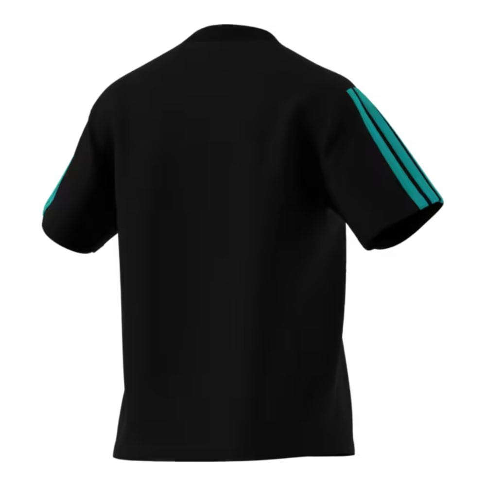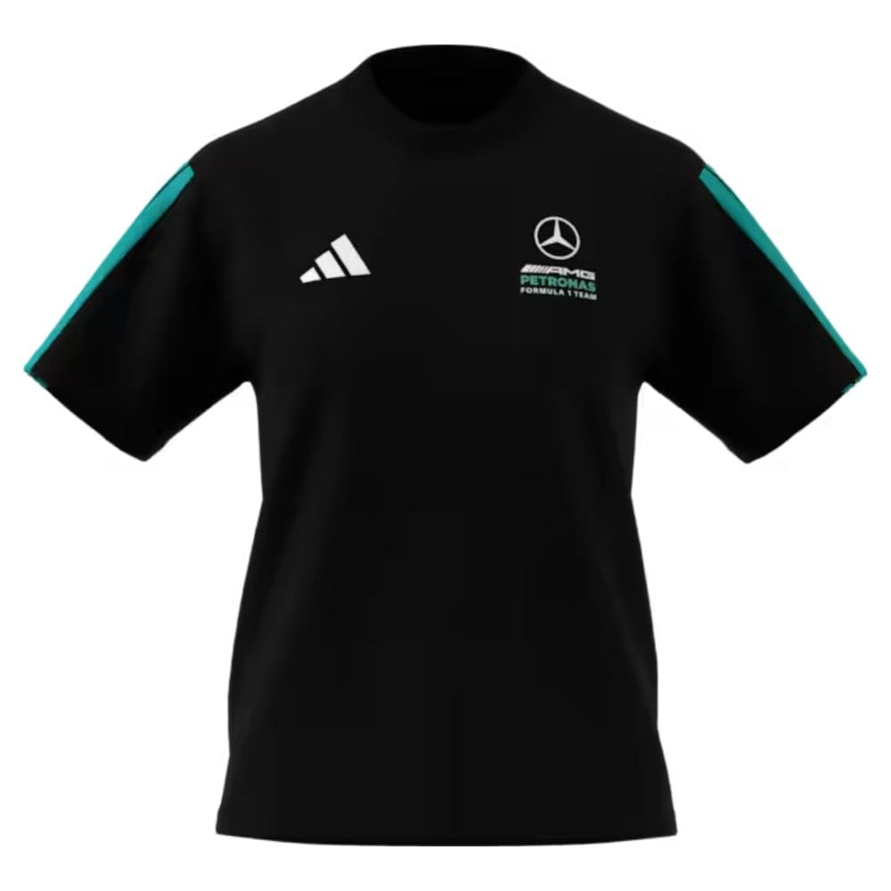 Czarna koszulka damska doskonale łączy klasyczny styl i sportowy fason. Czarny design koszulki podkreślono prążkowanym detalem na rękawie, a także logo teamu Mercedes-AMG PETRONAS Formula One i logo adidas na piersi. Koszulka, która podkreśla Twoją pasję do sportów motorowych i jest niezwykle wygodna w noszeniu dzięki użyciu czystej bawełny.