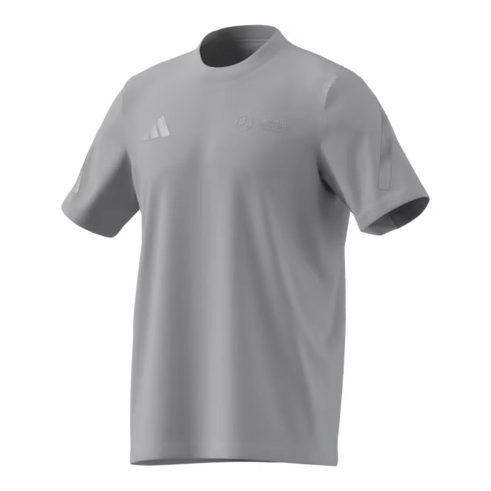 Niezależnie od tego, czy spędzasz wolny czas, uprawiasz sport, czy jesteś na torze wyścigowym: dzięki szarej koszulce Mercedes-AMG PETRONAS Formula One Team pokażesz, dla kogo bije Twoje serce kibica. Jako Special Edition z okazji Grand Prix Wielkiej Brytanii 2025, męska koszulka ma szary wzór, który uzupełniają srebrne paski na rękawach oraz logo zespołu i logo adidas na piersi.