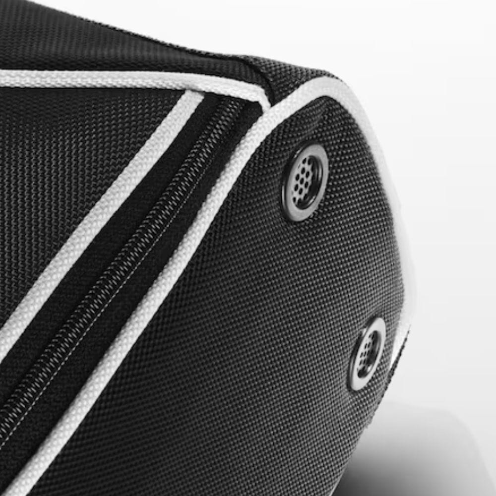 Duża, zapinana na zamek komora główna. Otwory wentylacyjne. Białe haftowane logo Mercedes-Benz. Białe haftowane logo TaylorMade. Wykonane przez TaylorMade.