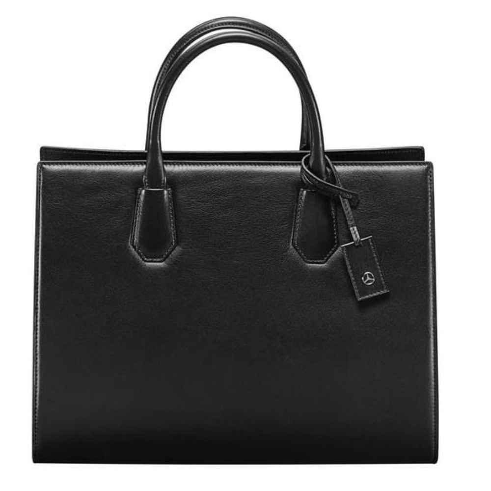 Miejsce na ważne dokumenty, akta, laptopa i nie tylko: Czarna torebka ze skóry bydlecej oferuje wystarczająco dużo miejsca do przechowywania dzieki licznym przegródkom. Dostepne są trzy duże przegrody, zintegrowana przegroda na laptopa z zamkiem błyskawicznym i różne przegrody wewnetrzne, które pozwalają optymalnie chronić zawartość torby. Wykonana przez BREE dla Mercedes-Benz torba zachwyca również swoim wyglądem. W tym kontekście klasyczny czarny design ozdobiony jest skórzanym brelokiem z gwiazdą Mercedesa.