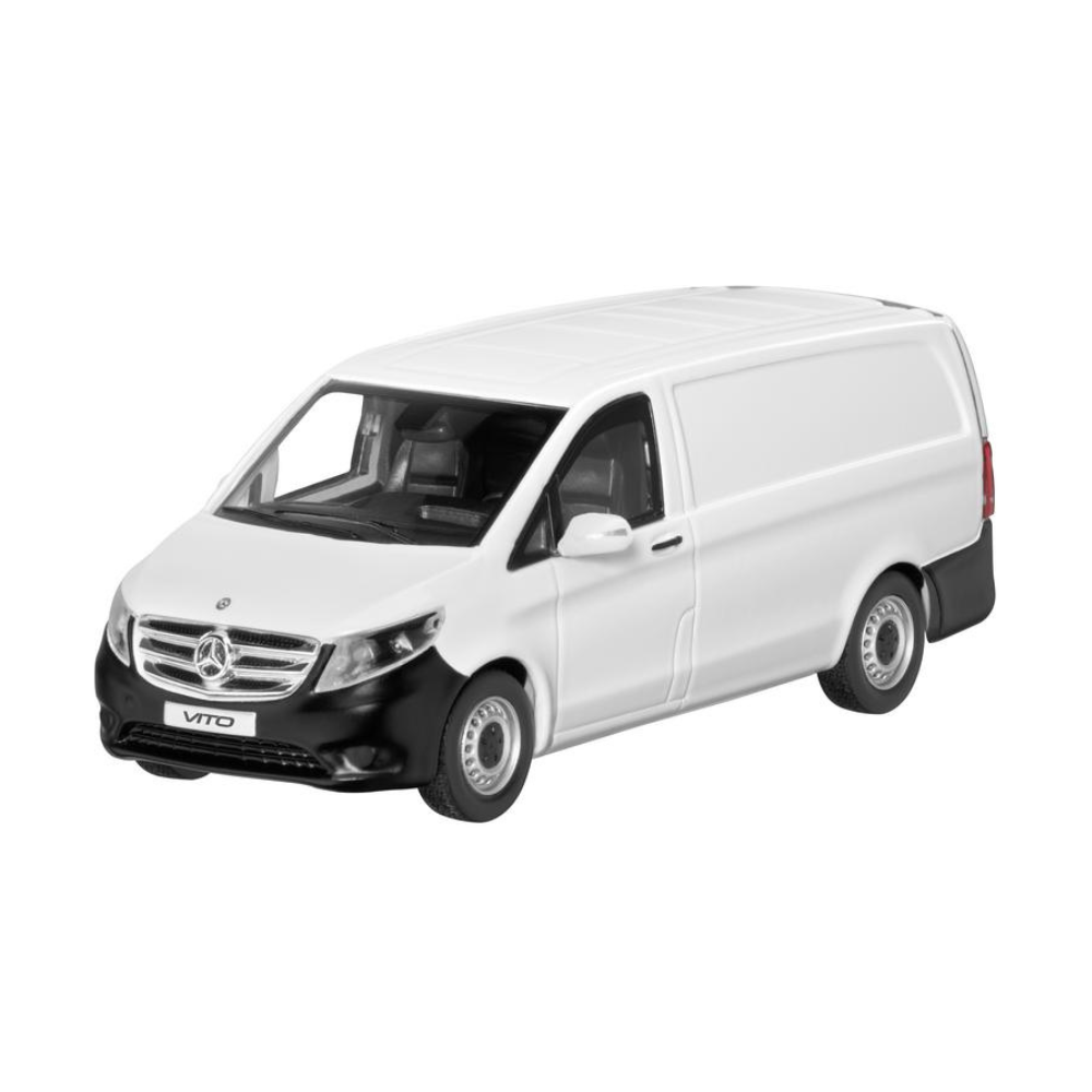 Modelik Mercedes-Benz Vito w skali 1:43 z otwieranymi drzwiami tylnymi.