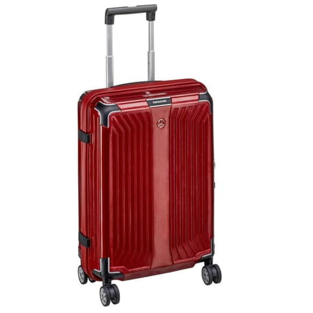 Walizka Spinner 69 Lite-Box w kolorze lakieru Mercedes-Benz. Wysoce odporny na uderzenia materiał (Curv®). Funkcjonalne wyposażenie wnetrza z regulowanymi paskami do pakowania i dwoma przegródkami. Gładkie, ciche podwójne koła. Zamek TSA. W tym torba na buty i torba na pranie. Wykonane dla Mercedes-Benz przez Samsonite. Wymiary ok. 46 x 27 x 69 cm, objetość ok. 75 l, waga ok. 2,7 kg.