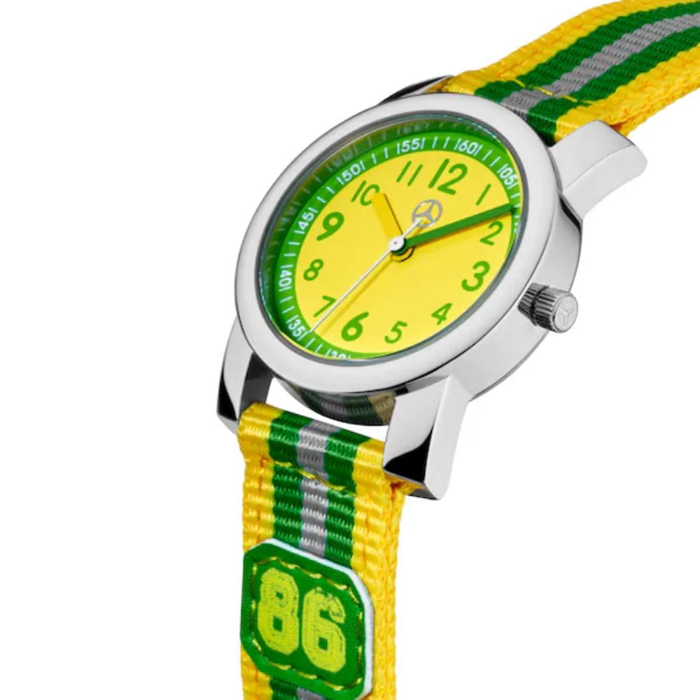 Niezależnie od tego, czy jesteś poza domem, czy w szkole, dzięki temu zegarkowi dzieci mogą zawsze zwracać uwagę na godzinę. Zegarek dla dzieci ma obudowę ze stali nierdzewnej i zielono-żółtą tarczę, a zielono-żółte wskazówki dodają odrobinę koloru. Ponadto zielono-żółty nylonowy pasek uzupełnia harmonijny design. Liczba ta odnosi się do roku 1886 – roku wynalezienia samochodu.
