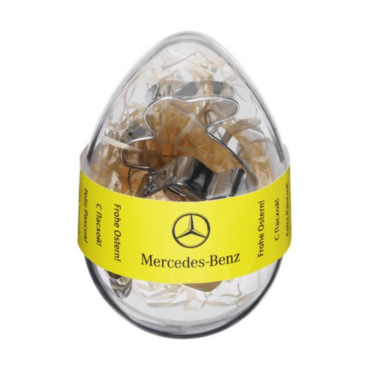 Przezroczyste plastikowe jajko plus foremki do ciastek – 2 w kształcie królika i 1 w kształcie samochodu.