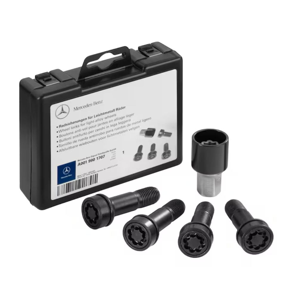 Zestaw do zabezpieczenia kół. Bez ryzyka kradzieży: zestaw zabezpieczeń kół Mercedes-Benz zapewnia najlepszą możliwą ochronę oryginalnych kół Mercedes-Benz. Warto profilaktycznie wykorzystać zestaw, składający się z czterech zabezpieczeń i klucza. Praktyczny w poręcznym pudełku.